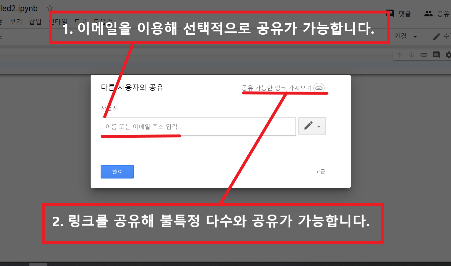 ( 사실 구글 드라이브나 구글시트 공유와 방법은 동일합니다. )
